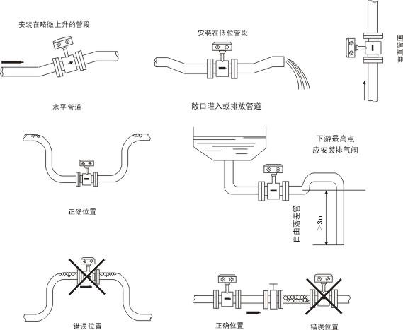 上述2、3、4項情況,流量計上、下游須裝異徑管。異徑管中心錐角應不大于15°,且異徑管上游至少有5倍