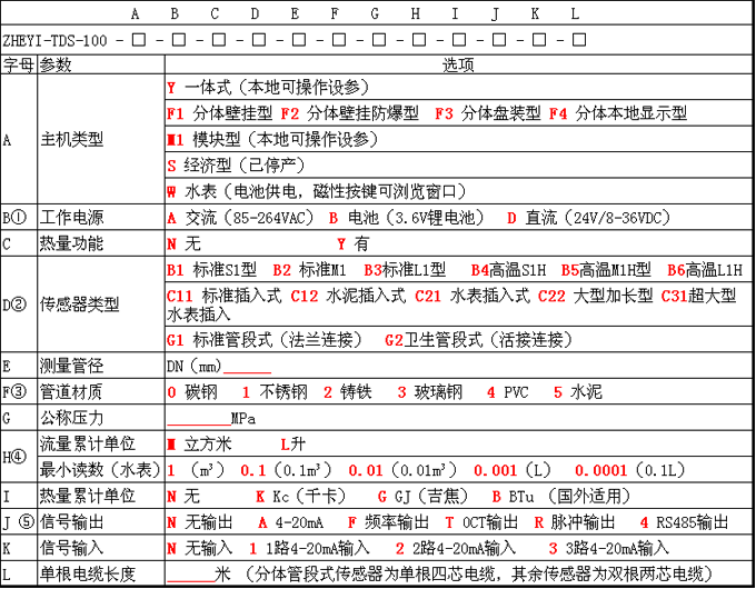 舉例說明:ZHEYI-TDS-100F1-A-N-B2-200-0-1.6-M-K-4-N-10