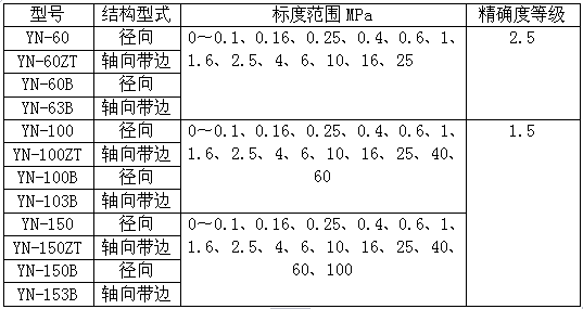型號、結構型式、標度范圍及精度等級