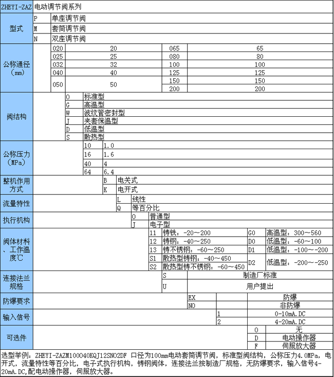 ZHEYI-ZAZP/ZAZM、系列電動單座/套筒調節閥接受調節儀表來的直流電流信號,改變被調介質流量,