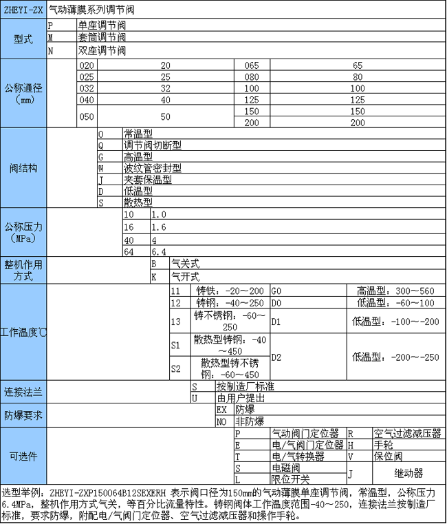 ZHEYI-ZXN型氣動薄膜雙座調節閥采用雙導向結構,閥體結構緊湊,流體通道呈S流線型,壓降損