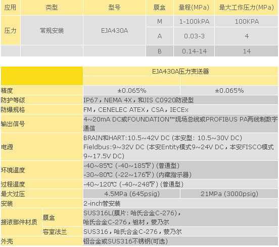 EJA430A壓力變送器用于測量氣體、液體和蒸汽的壓力,然后將其轉變成4-20mADC的電流信號輸出。